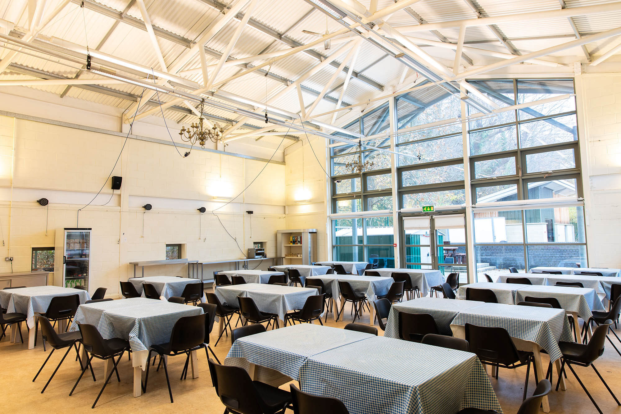 Mae lle i ddarparu llety a bwydo dros 200 o bobl, a chyfle i ddefnyddio cyfleusterau dan do o’r radd flaenaf hefyd: darlithfa, ystafelloedd dosbarth ac ystafelloedd TG.
